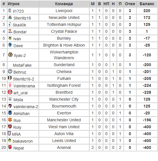 EPL 21 EPL турнир по ставкам