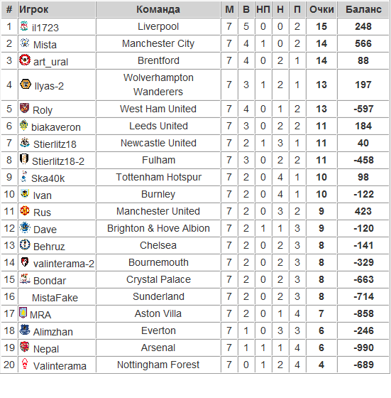 EPL 21 EPL турнир по ставкам
